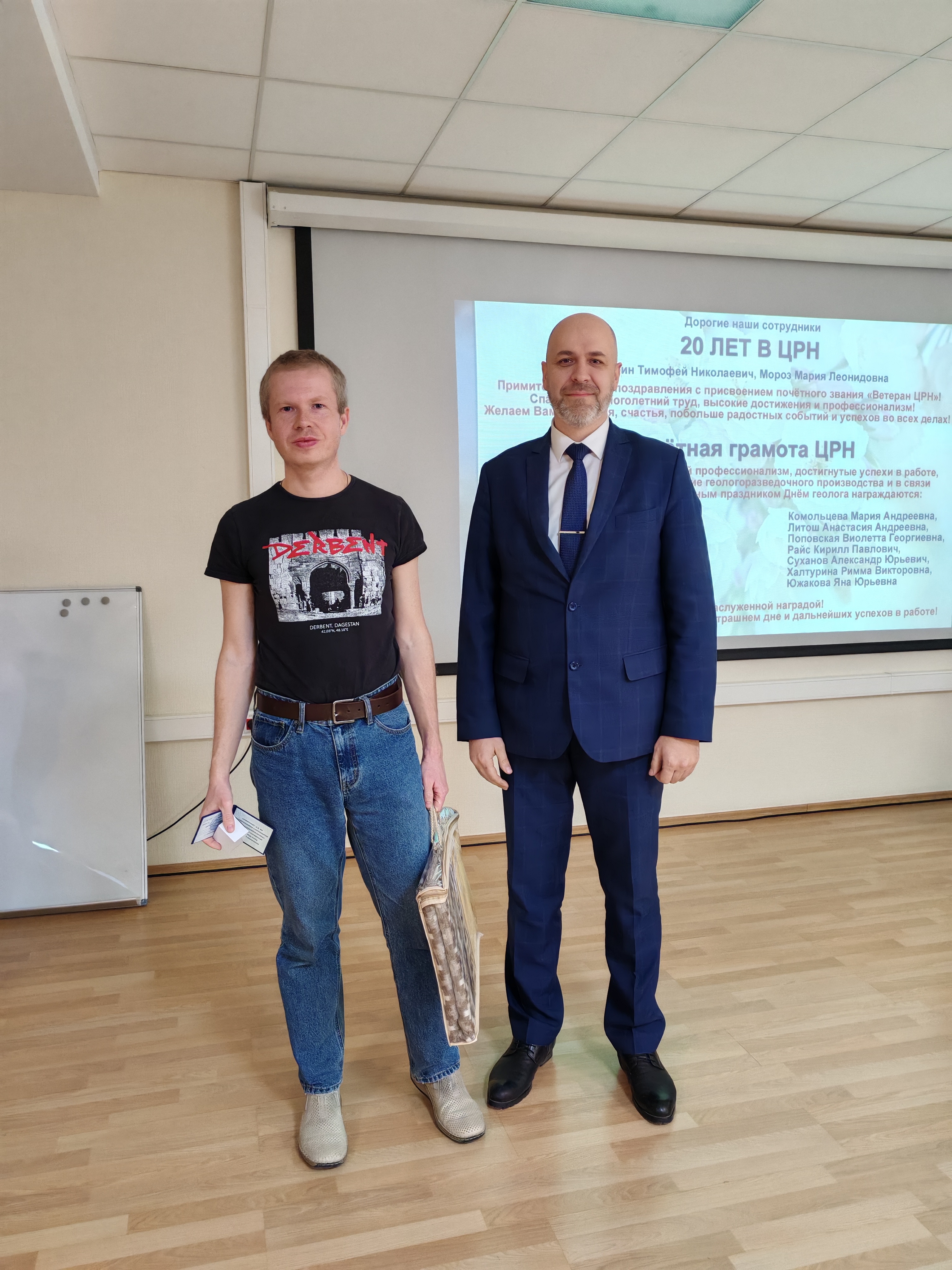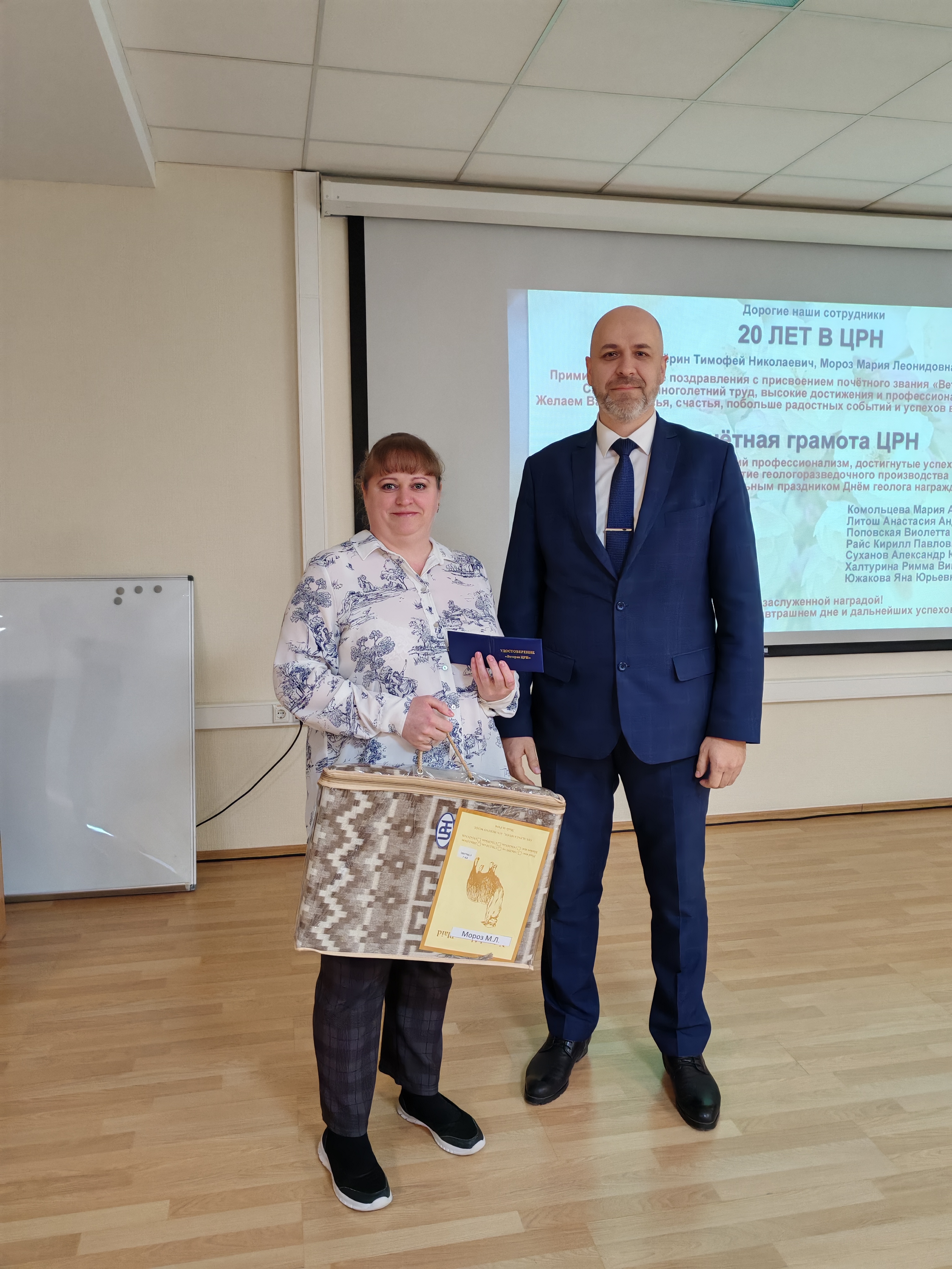 Звания «Ветеран ЦРН» удостоены Тимофей Печёрин – старший научный сотрудник лаборатории контроля разработки, и Мария Мороз – старший научный сотрудник лаборатории доюрских отложений. Им вручены памятный значок и удостоверения.